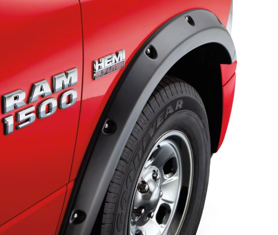 High-Quality Thermoplastic. Built to match your RAM’s rugged lifestyle, this set of 4 Wheel Flares features high-strength thermoplastic construction. They exhibit exceptional strength and flexibility to handle the impacts of all sorts of road hazards and harsh outdoor elements. In addition, it maintains its remarkable structural integrity with prolonged off-road use.