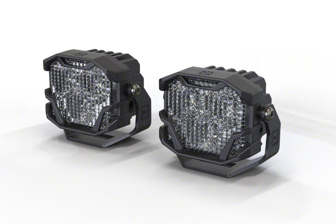Bright Yellow Light. Made for a universal fit, these Morimoto 4Banger 2.0 NCS LED Light Pods come in pairs with a matte black finish housing and clear lenses. Built to be SAE compliant, these light pods have a bright yellow light output that helps clear the way during nighttime or bad weather driving. These light pobs had a flood beam mode for improved driving visibility.
