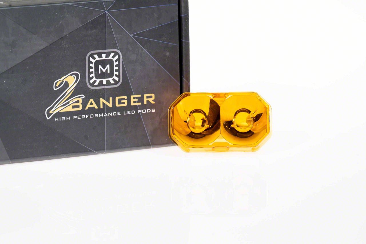 Precision Off-Road Illumination. The Morimoto 2Banger Light Pod Lens delivers enhanced lighting performance with a yellow spot beam configuration and is compatible with various setups requiring a universal fit. Designed to maximize visibility during off-road or low-visibility conditions, it provides focused amber-toned illumination that cuts through fog, dust, and precipitation.
