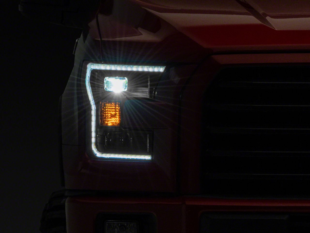 Superior Illumination. Employing a projector lens design with a dual LED setup, these Morimoto Headlights will light up the road ahead with a bright focused beam for better nighttime visibility. The stylish white LED Daytime Running Light (DRL) accents ensure that you are visible day or night by distracted drivers. While the amber incandescent turn signal indicators bring an updated look to your F-150.