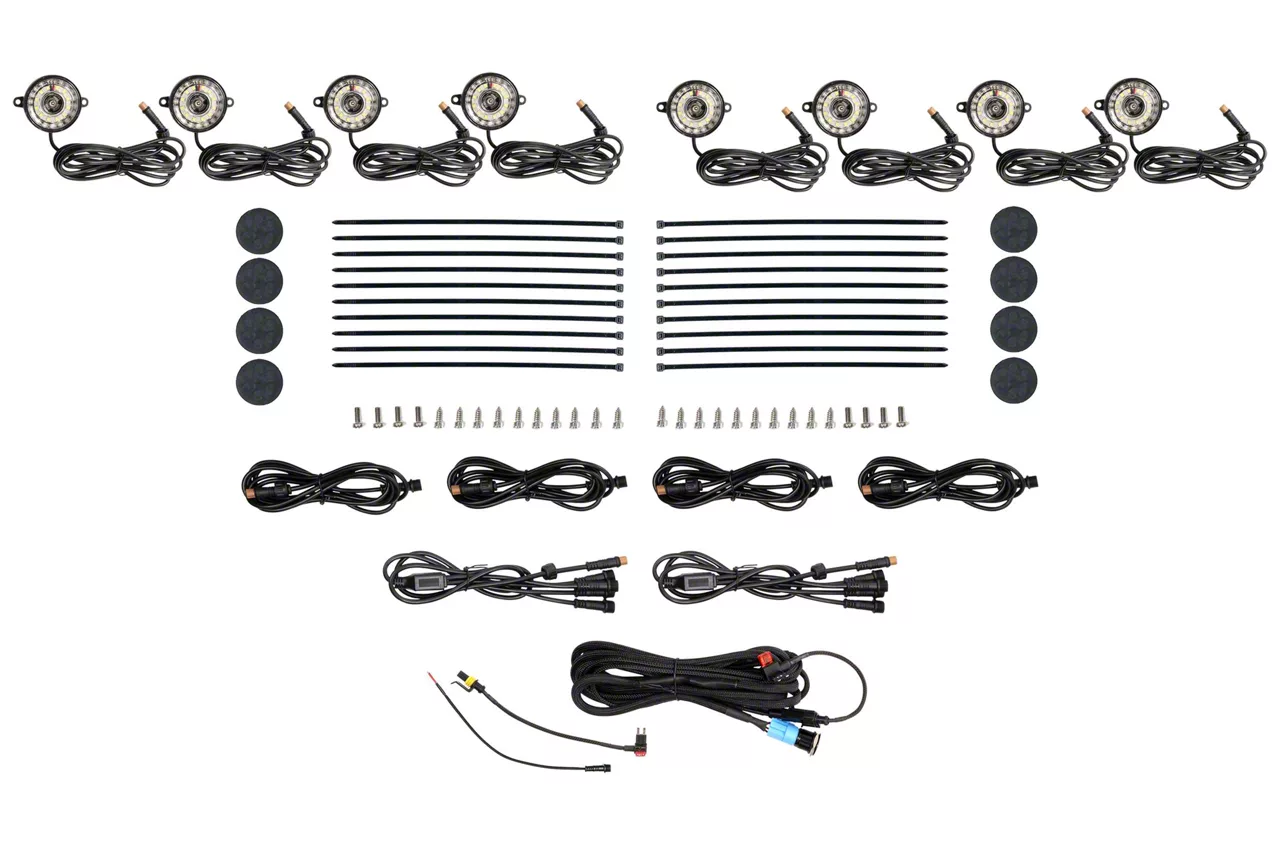 Illuminate Off-Road Adventures. Brighten your path through rugged terrains with the Morimoto LED Rock Light Kit available in a striking white color. This 8-pack set is specifically designed to enhance visibility during your off-road explorations, ensuring a safer and more enjoyable experience. Ideal for night-time adventures, these LED lights provide a powerful and efficient way to light up the area around your vehicle, making it easier to navigate through challenging environments and adding an exciting aesthetic to your off-roading setup.