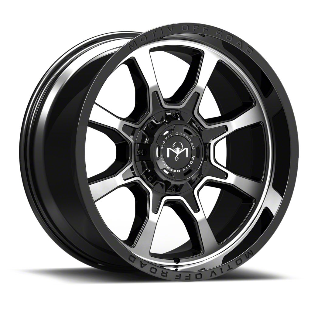 Motiv Offroad Glock Gloss Black 6-Lug Wheel; 20x10; -12mm Offset - This wheel's elegant design will certainly enhance your vehicle's aesthetic, complementing its luxury and performance. The unique styling of this wheel makes it an ideal choice for a standout quality of your ride, reflecting the premium quality associated with the Motiv Offroad brand.