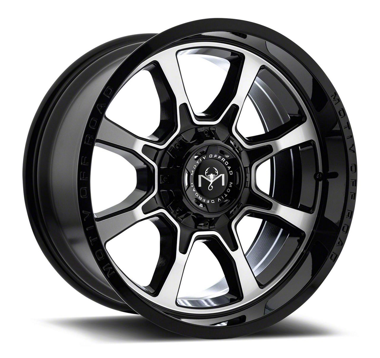 Motiv Offroad Glock Gloss Black Machined 8-Lug Wheel; 18x9; 18mm Offset - This wheel's elegant design will certainly enhance your vehicle's aesthetic, complementing its luxury and performance. The unique styling of this wheel makes it an ideal choice for a standout quality of your ride, reflecting the premium quality associated with the Motiv Offroad brand.