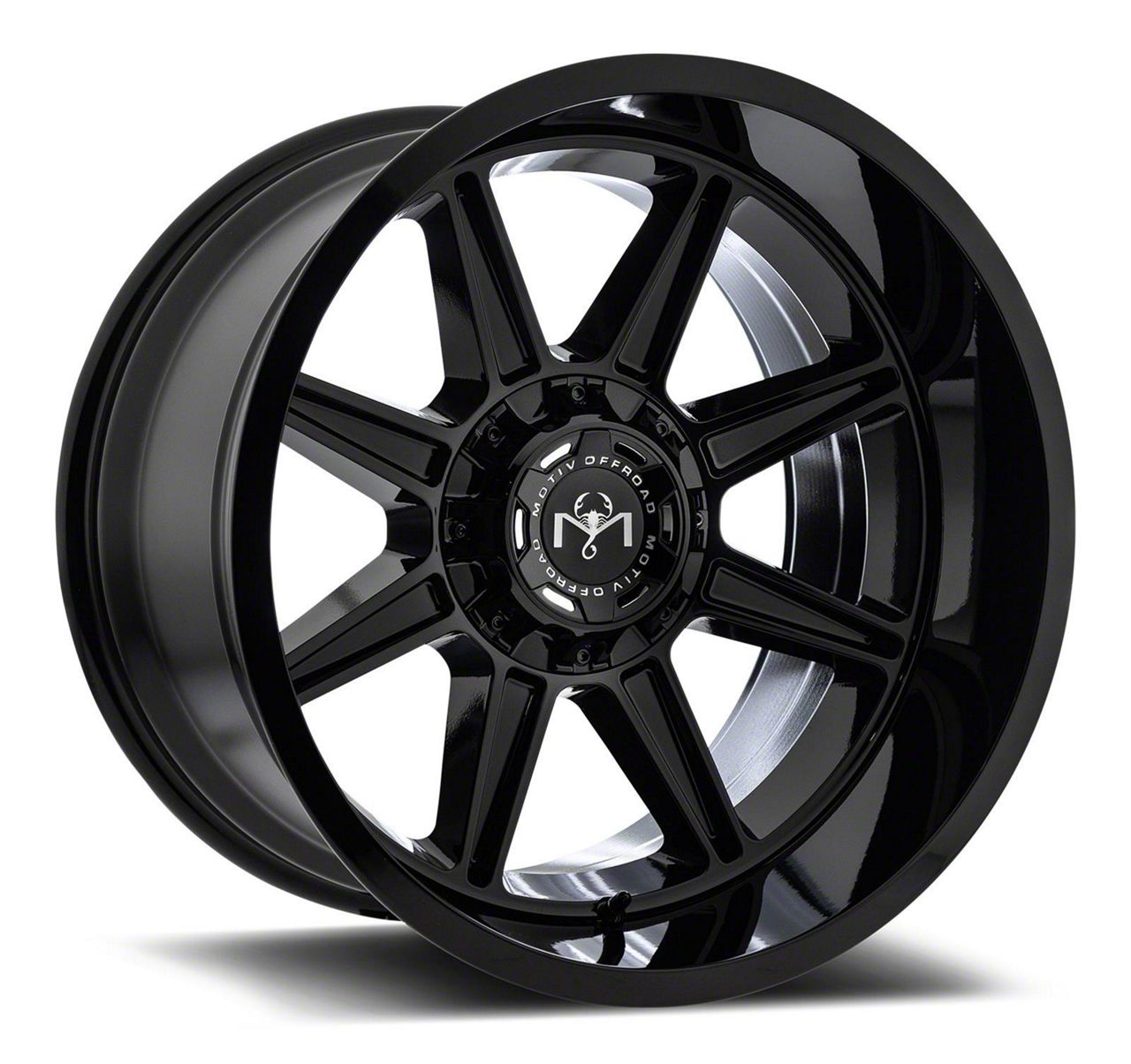 This 20x10 Motiv Offroad Balast Gloss Black 6-Lug Wheel is completed in a high-quality gloss black finish that will make the wheel the envy of everyone. There is a durable clear coat that protects against driving hazards.