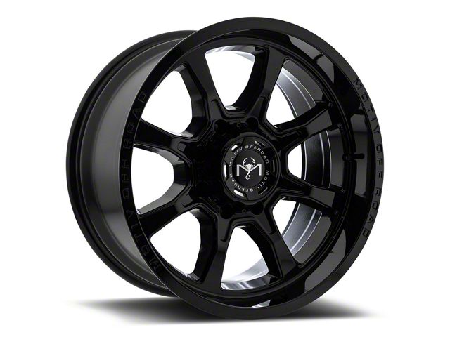 Motiv Offroad Glock Gloss Black 8-Lug Wheel; 20x9; 18mm Offset exudes sophistication with its finish, offering a sleek and modern appeal to any vehicle it adorns. The design is meticulously crafted to enhance the aesthetic of your vehicle, giving it a distinctive and upscale look. Perfect for those seeking to elevate their vehicle's style, this wheel blends seamlessly with both contemporary and classic vehicle designs, making it a versatile choice for a wide range of vehicles. Its robust construction ensures durability, making it a reliable choice for drivers who value both style and quality.
