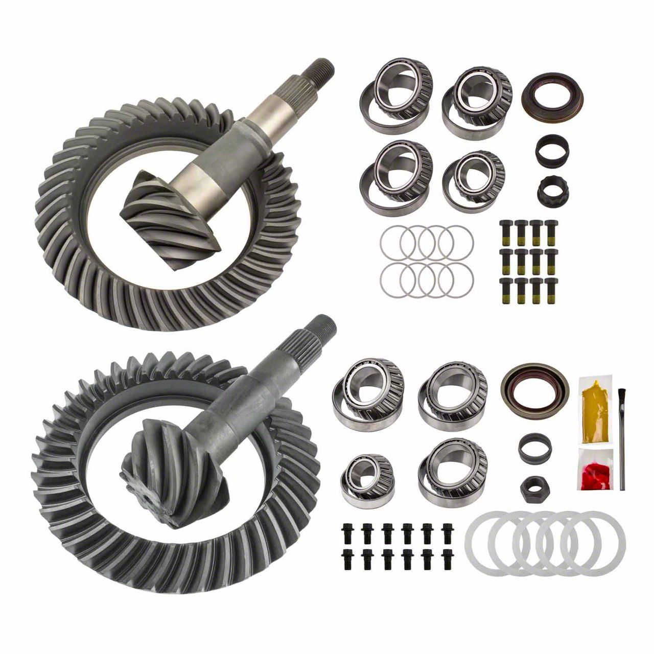 Complete Axle Gear Kit. The Motive Gear 9.25-Inch Front and 11.50-Inch Rear Axle Complete Ring and Pinion Gear Kit; 4.10 Gear Ratio is designed to restore or upgrade the differential gearing. It ensures proper torque distribution between wheels, enhancing vehicle performance and durability.