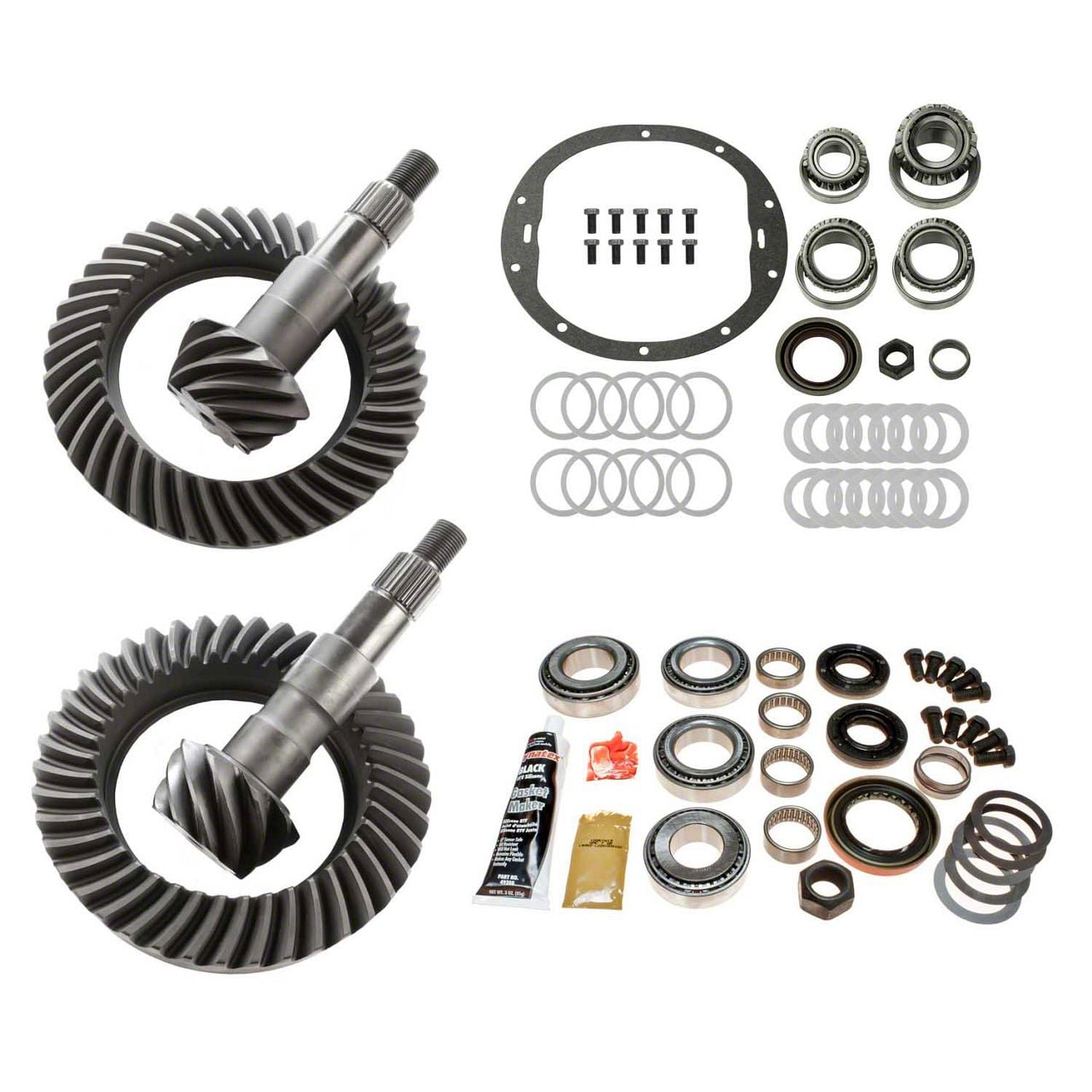 Outstanding Performance and Efficiency. Installing massive tires on your truck takes a toll on its performance and efficiency. This Motive Gear 8.25-Inch Front and 8.50-Inch Rear Axle Complete Ring and Pinion Gear Kit; 4.11 Gear Ratio sets your vehicle up for aggressive applications. That’s because it equips your Silverado 1500 with front and rear ring and pinion sets and bearing kits that are optimized for lifted and big-tire setups. This greatly enhances your vehicle’s differential performance on or off the roads.