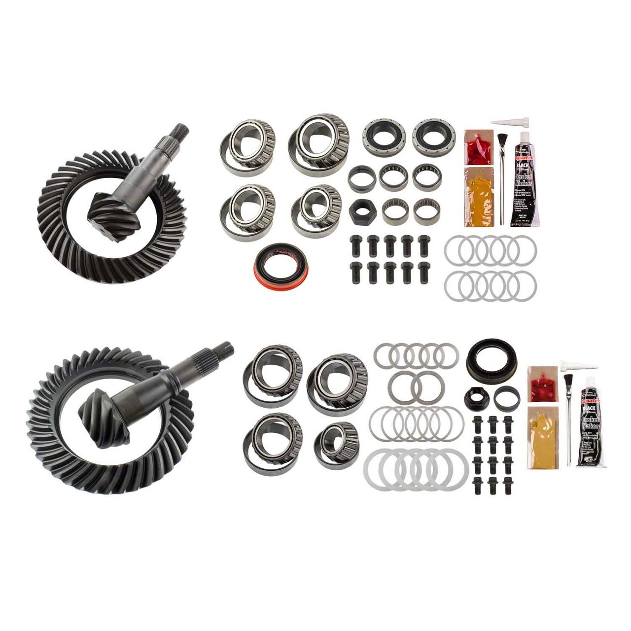 Better Differential Performance. If you want to change your truck’s tire size, consider installing this Motive Gear 8.25-Inch Front and 9.50-Inch Rear Axle Complete Ring and Pinion Gear Kit; 4.56 Gear Ratio. This ring and pinion gear kit is a complete set to restore and improve your truck’s differential performance when changing tire size. Basically, it contains (2) ring gears, (2) pinion gears, and (2) Timken bearing kits.