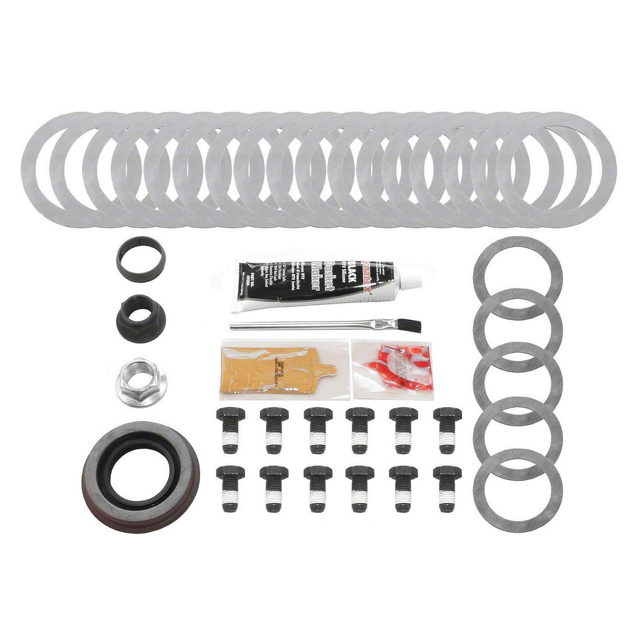 Construction and Appearance. Each component in the Motive Gear Ford 9.75-Inch Rear Differential Gear Install Kit is crafted from high-quality materials to ensure strength and durability. Manufactured using state-of-the-art production methods, the kit guarantees consistent performance under demanding conditions. Each part is engineered for reliability and finished to withstand high stress and heat. The overall construction ensures precise tolerances and long-term dependability.