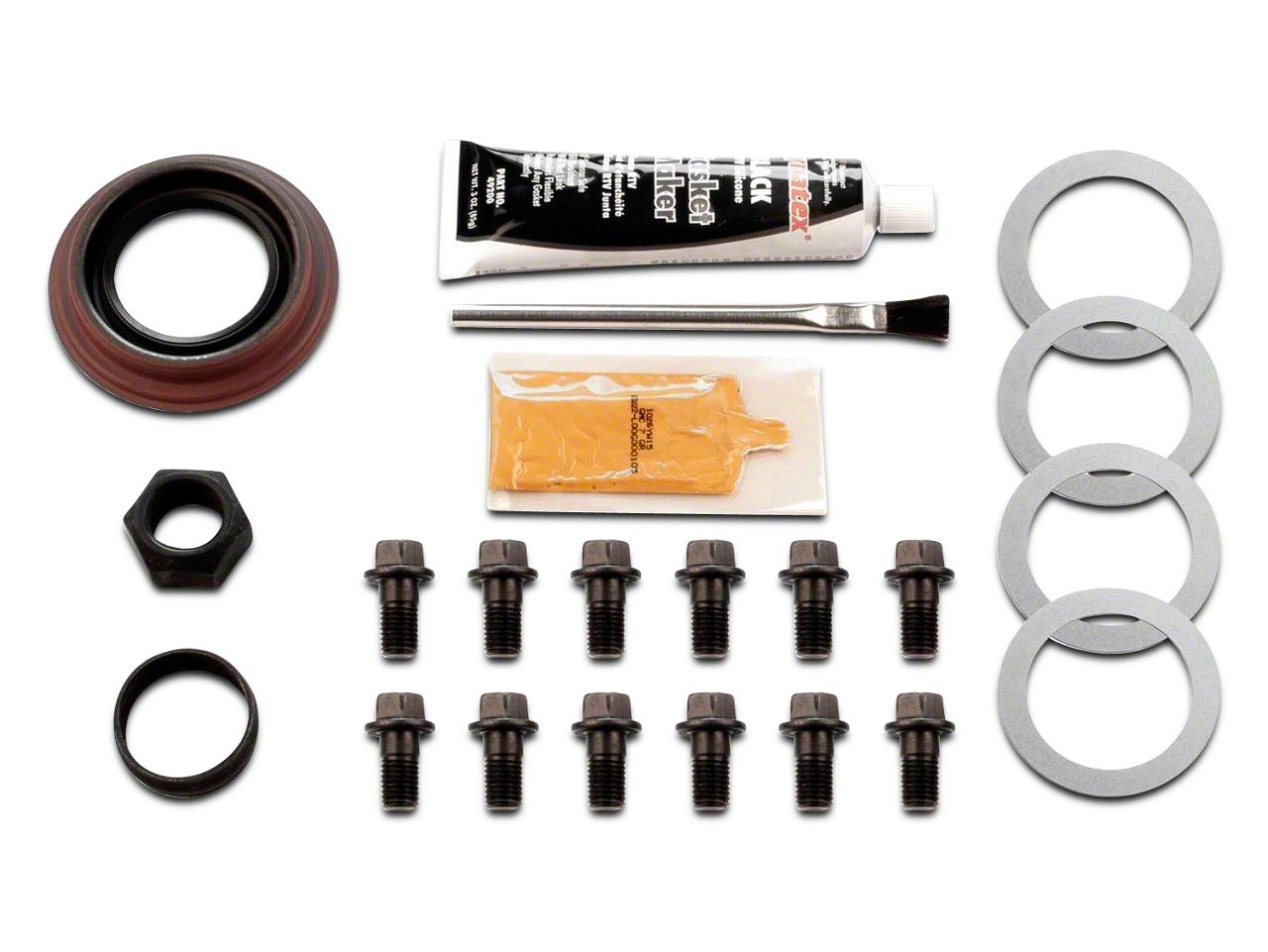 Everything you need. These rear ring and pinion installation kit is ideal when you are installing new ring and pinion. In addition, it is perfect as a differential rebuild kit. This kit can help in reviving your pinion ratios. You will get everything you need in this kit, from bearings, pinion shims, pinion seals, pinion nuts, marking compound and ring gear bolts.