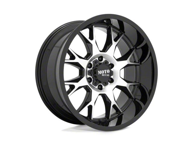 Moto Metal MO806 Gloss Black Machined 8-Lug Wheel; 22x12; -44mm Offset offers a sleek and modern design that enhances the visual appeal of any vehicle. Crafted with attention to detail, this wheel merges aesthetic elegance with a robust build, making it a fitting choice for those seeking a blend of style and durability.