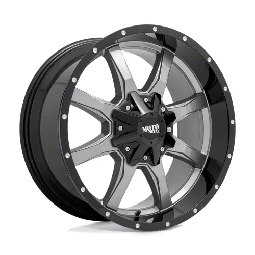 Application. This Moto Metal MO970 Gloss Gray with Gloss Black Lip 8-Lug Wheel; 20x10; 12mm Offset with a backspace of 5.973 Inch, 151.8mm; and bolt pattern of 8 x 165.1mm (8 x 6.5-Inch) contributes to impeccable alignment and driving stability. Designed to fit 2001-2006 Sierra 2500 HD models, sold individually.