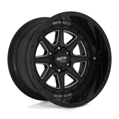 Moto Metal MO801 Phantom Gloss Black Milled 8-Lug Wheel; 22x12; -44mm Offset - This wheel's elegant design will certainly enhance your vehicle's aesthetic, complementing its luxury and performance. The unique styling of this wheel makes it an ideal choice for a standout quality of your ride, reflecting the premium quality associated with the Moto Metal brand.