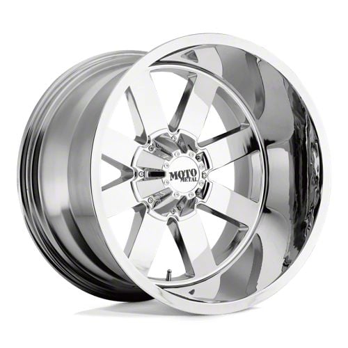 The 22x10 Moto Metal MO962 Chrome 8-Lug Wheel; ; -18mm Offset has a chrome finish that is accomplished in a 3-step plating process that includes copper, nickel and chrome.