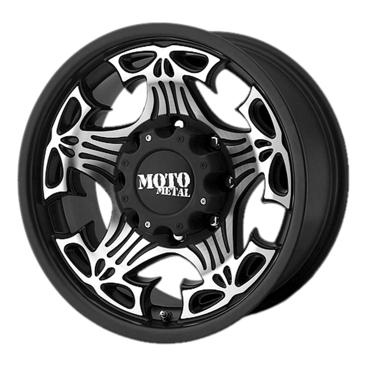 Moto Metal Skull Gloss Black with Machined Face 8-Lug Wheel; 20x9; -12mm Offset The Moto Metal Skull Gloss Black with Machined Face 8-Lug Wheel combines a sleek, sophisticated design with premium construction that enhances the visual appeal and complements a wide range of vehicle styles. This wheel is perfect for those seeking to make a bold statement while maintaining elegance and robustness.