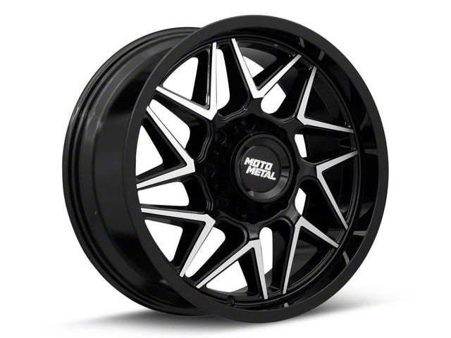 Moto Metal Turbine Gloss Black with Machined Face 8-Lug Wheel; 20x9; 1mm Offset exudes sophistication with its finish, offering a sleek and modern appeal to any vehicle it adorns. The design is meticulously crafted to enhance the aesthetic of your vehicle, giving it a distinctive and upscale look. Perfect for those seeking to elevate their vehicle's style, this wheel blends seamlessly with both contemporary and classic vehicle designs, making it a versatile choice for a wide range of vehicles. Its robust construction ensures durability, making it a reliable choice for drivers who value both style and quality.
