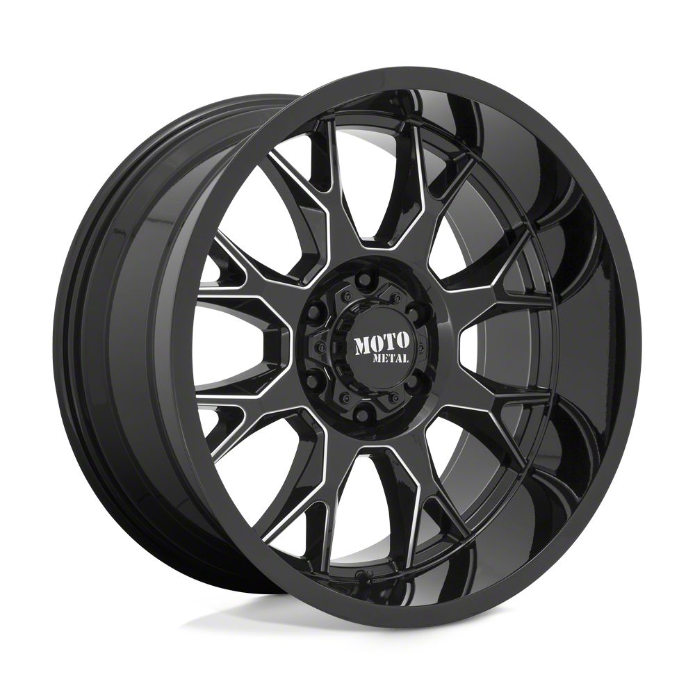The 20x9 Moto Metal MO806 Gloss Black Milled 8-Lug Wheel is completed in a high-quality gloss black finish with steel milled accents that will be the envy of everyone. For added protection and good looks, there is a durable clear coat that withstands the rigors of everyday driving,