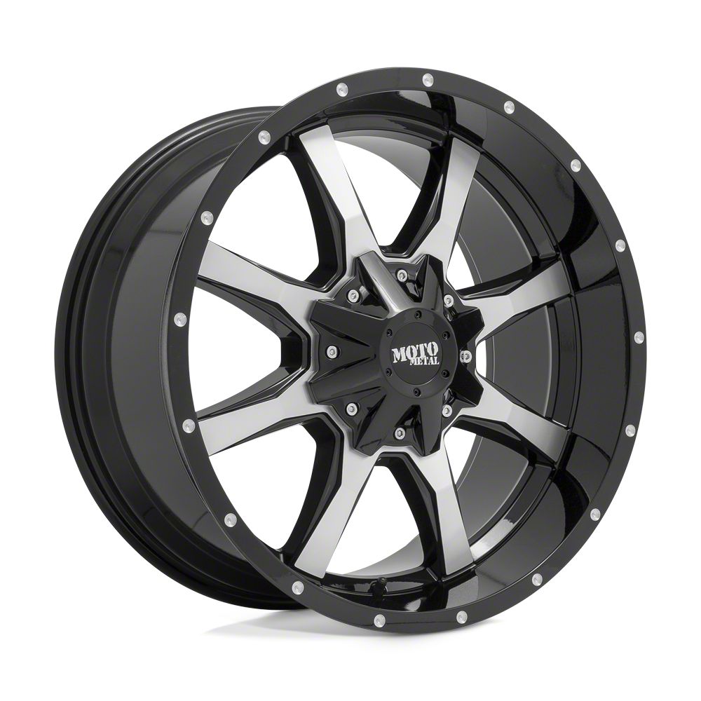 Application. This Moto Metal MO970 Gloss Black Machined Face 5-Lug Wheel; 20x9; 18mm Offset, with a backspacing of 5.709 Inch, 145mm and a bolt pattern of 5 x 139.7mm (5 x 5.5-Inch), is designed to fit 2002-2008 models. Sold individually.