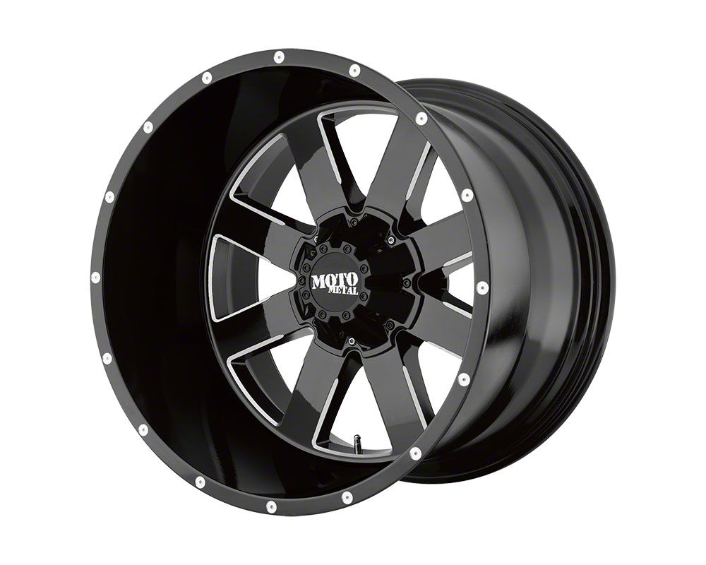Moto Metal MO962 Gloss Black Milled 8-Lug Wheel; 22x14; -76mm Offset - Elevate your vehicle's style with this wheel's striking design. Reflecting the Moto Metal's commitment to quality, it promises to add a touch of elegance and a strong character to your ride. Perfect for those seeking to make an impression without saying a word.