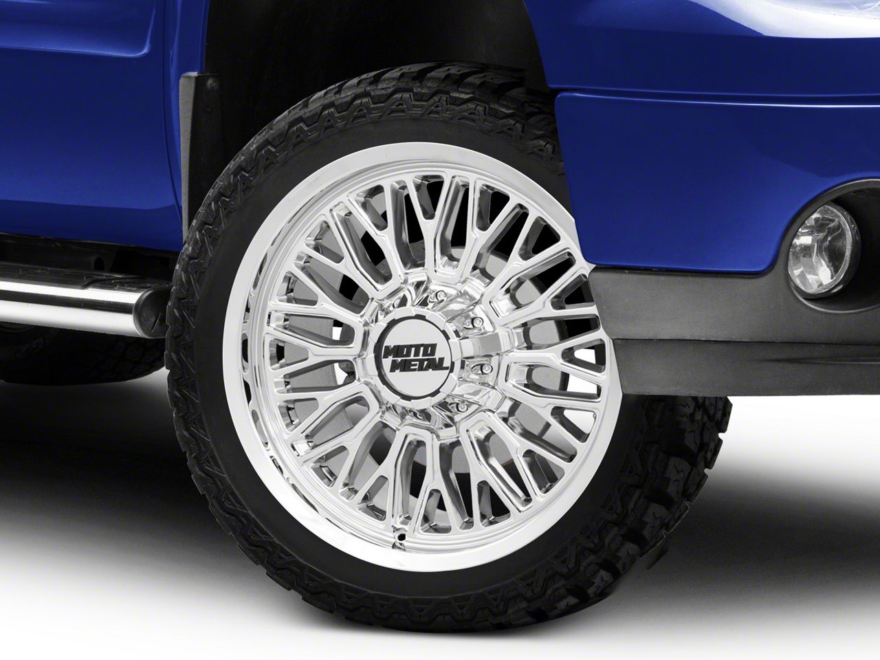 Application. This Moto Metal Stinger Chrome 6-Lug Wheel; 22x12; -44mm Offset, with a backspace of 4.768 Inch, 121.1mm and bolt pattern of 6 x 139.7mm (6 x 5.5-Inch), is designed to provide not only a striking visual appeal but also to contribute significantly to the alignment and driving stability of the vehicle. Its specifications ensure a precise fit with the vehicle model, enhancing the overall driving experience. Built to fit the 2007-2013 Sierra 1500, this wheel is sold individually.