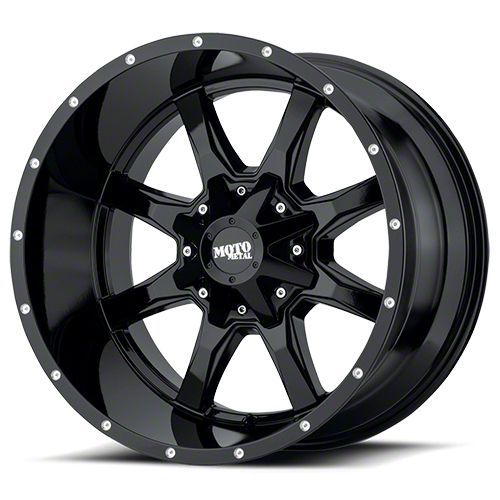 This 20x9 Moto Metal MO970 Gloss Black 8-Lug Wheel is completed in a high-quality gloss black finish that will make the wheel the envy of everyone. There is a durable clear coat that protects against driving hazards.