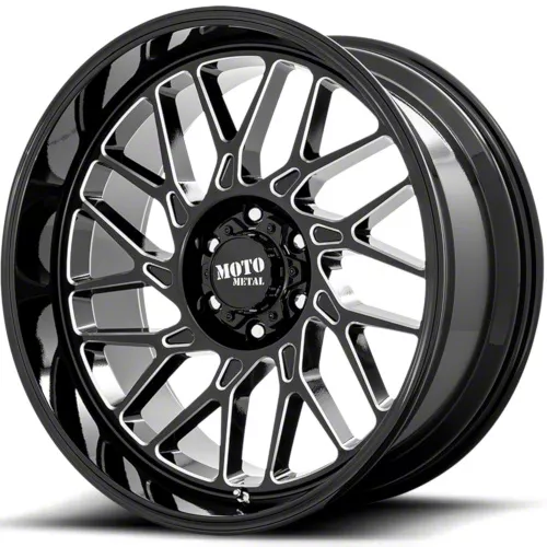 Moto Metal MO805 Gloss Black Milled 6-Lug Wheel; 20x10; -18mm Offset. The Moto Metal MO805 Gloss Black Milled 6-Lug Wheel offers a striking balance of style and refinement. Its unique design accentuates the vehicle's aesthetic, while the premium construction underscores its robust nature. This wheel is a perfect choice for those seeking both elegance and a strong visual statement.