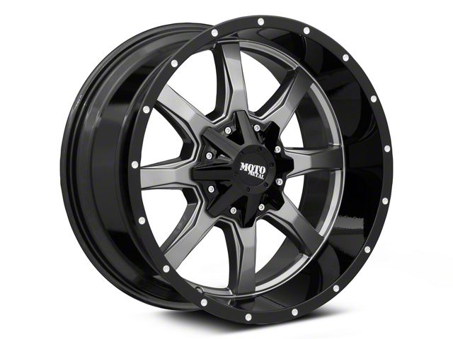 Moto Metal MO970 Gloss Gray Center with Gloss Black Lip 6-Lug Wheel; 20x10; -18mm Offset - Elevate your vehicle's style with this wheel's striking design. Reflecting the Moto Metal's commitment to quality, it promises to add a touch of elegance and a strong character to your ride. Perfect for those seeking to make an impression without saying a word.