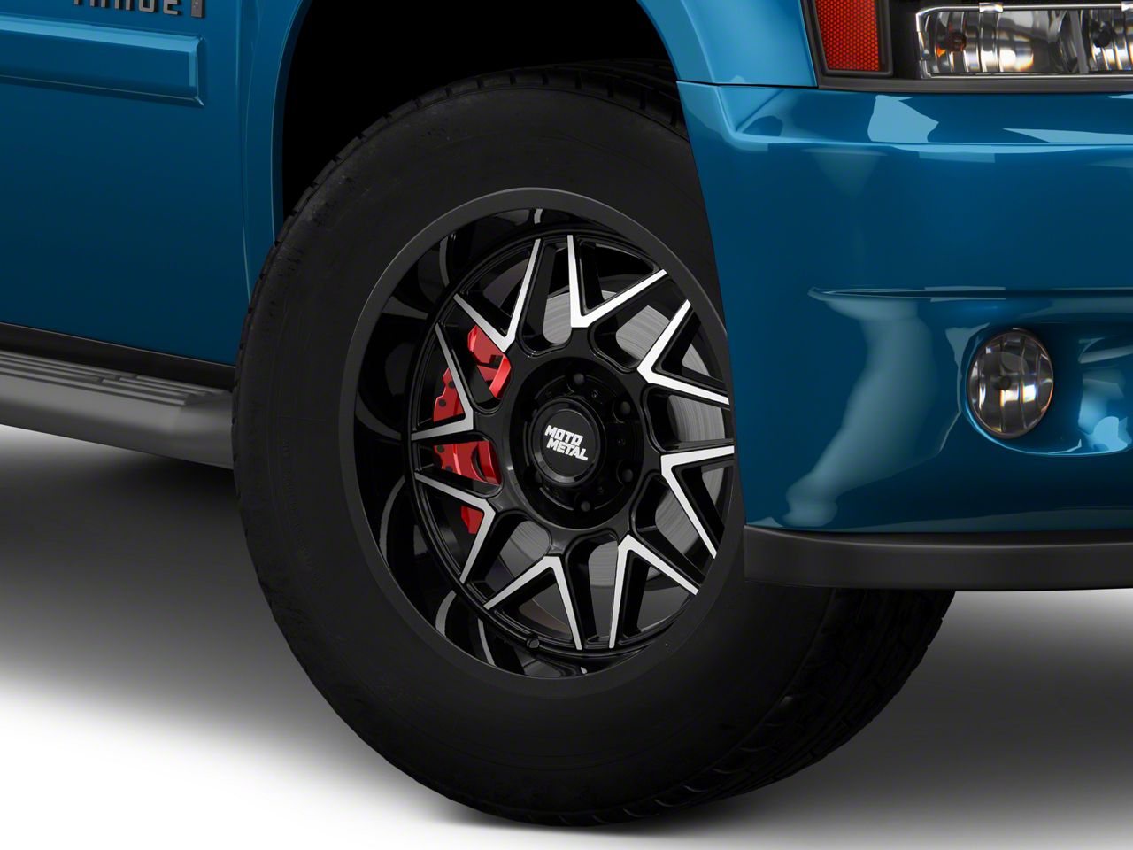 Application. This Moto Metal Turbine Gloss Black with Machined Face 6-Lug Wheel; 20x10, with a backspace of 4.791 Inch, 121.7mm and a bolt pattern of 6 x 139.7mm (6 x 5.5-Inch), is designed to enhance alignment and driving stability. It's specially designed to fit the 2007-2014 Tahoe models, sold individually.