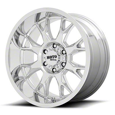 The 20x9 Moto Metal MO806 Chrome 6-Lug Wheel is completed in a high-quality chrome finish that is accomplished in a 3-step process. First is copper to adhere to the wheel, followed by nickel for strength and finally chrome for that amazing look.