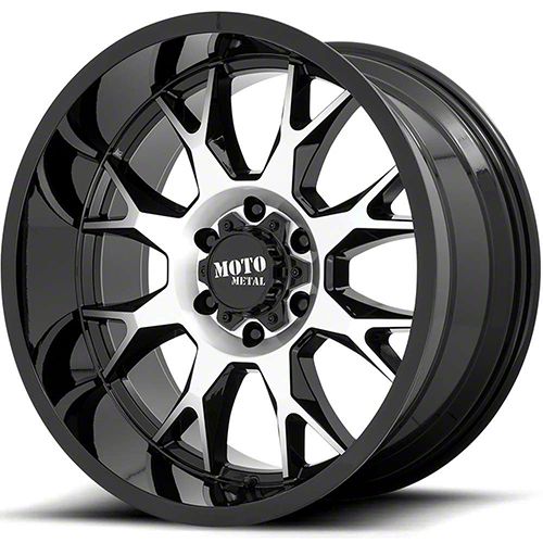 Moto Metal MO806 Gloss Black Machined 6-Lug Wheel; 22x12; -44mm Offset - This wheel's elegant design will certainly enhance your vehicle's aesthetic, complementing its luxury and performance. The unique styling of this wheel makes it an ideal choice for a standout quality of your ride, reflecting the premium quality associated with the Moto Metal brand.