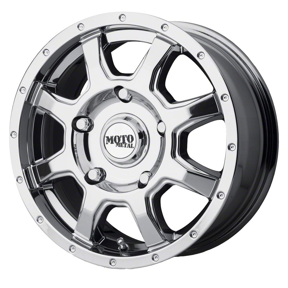 The 20x9 Moto Metal MO970 Chrome 6-Lug Wheel is completed in a high-quality chrome finish. For added protection and good looks, this Wheel features a durable, matte clear coat that is tough enough to stand up against the hazards of everyday driving.