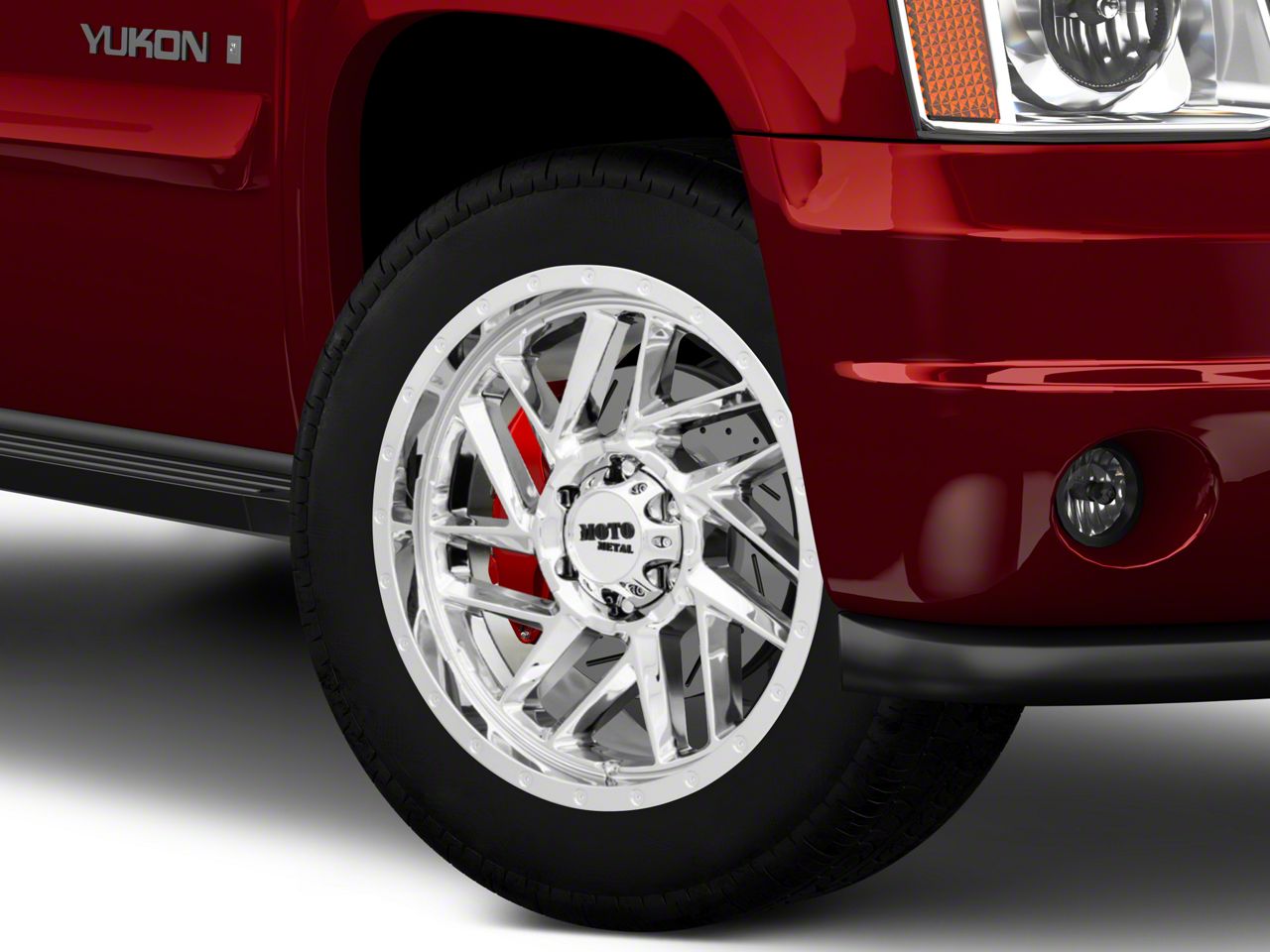 Application. This Moto Metal MO985 Breakout Chrome 6-Lug Wheel; 20x9; 0mm Offset with a backspace of 5 Inch, 127mm; and bolt pattern of 6 x 139.7mm (6 x 5.5-Inch), contributes to alignment, driving stability, and ensures a perfect fit with the vehicle model. Designed to fit the 2007-2014 Yukon. Sold individually.