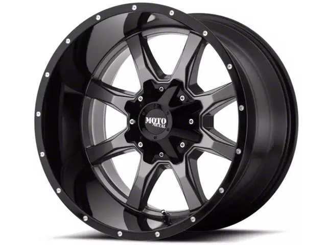 Moto Metal MO970 Gloss Gray with Gloss Black Lip 8-Lug Wheel; 18x10; -24mm Offset. Enhance your vehicle's look with the Moto Metal MO970 Gloss Gray with Gloss Black Lip 8-Lug Wheel. This premium wheel adds a touch of elegance and class to your vehicle, complementing its sophisticated aesthetic.