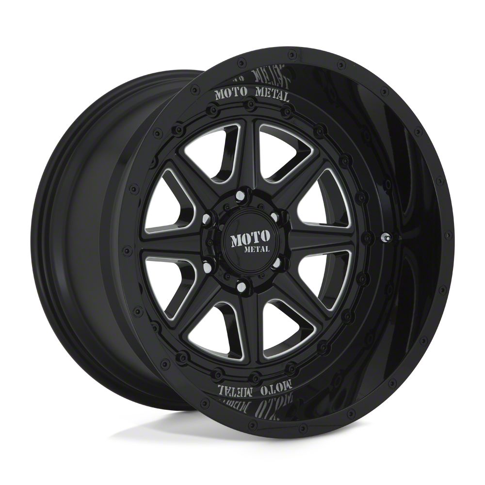 Application. This Moto Metal Phantom Gloss Black Milled 8-Lug Wheel; 20x10; -2018mm Offset, with a backspacing of 4.791 Inch, 121.7mm and a bolt pattern of 8 x 165.1mm (8 x 6.5-Inch), is designed to fit 2010-2018 models. Sold individually.