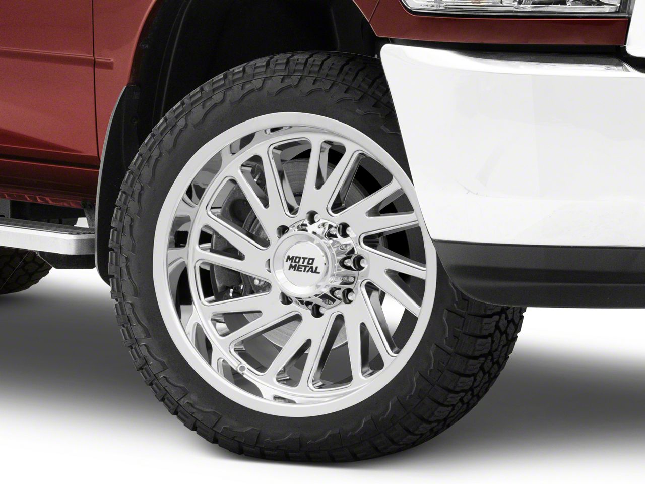 Application This Moto Metal Combat Chrome 8-Lug Wheel; 24x12; -44mm Offset, with a backspace of 4.768 Inch, 121.1mm and a bolt pattern of 8 x 165.1mm (8 x 6.5-Inch), enhances your vehicle's alignment and stability. Designed to fit 2010-2018 RAM 3500 SRW models, it ensures a perfect fit and improved driving experience. Sold individually.
