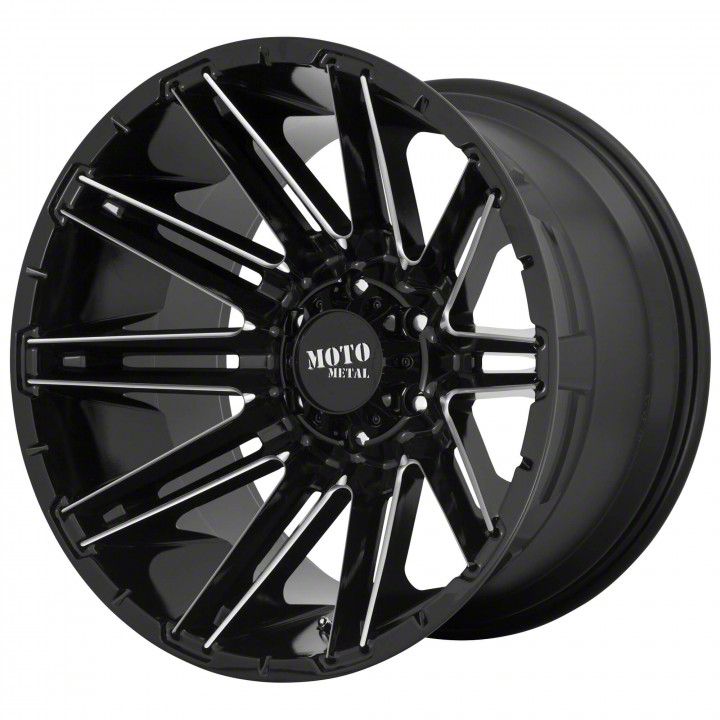 Moto Metal MO998 Kraken Gloss Black Milled 8-Lug Wheel; 20x12; -44mm Offset - Enhance your vehicle's style with the Moto Metal wheel. This wheel's distinctive design and finish complement your vehicle's aesthetics, making a bold statement. It's crafted to accentuate the unique character of your car, emphasizing a premium and robust appeal.