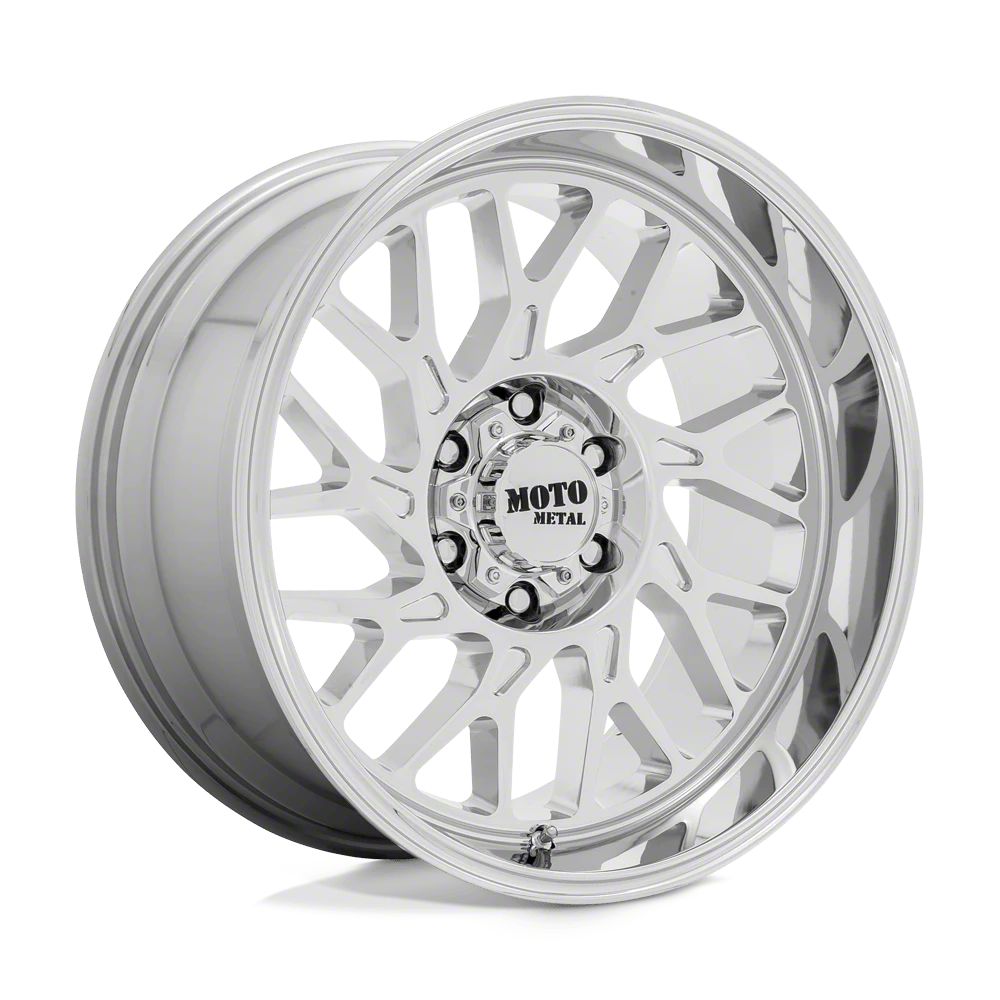 Moto Metal MO805 Chrome 8-Lug Wheel; 22x10; -18mm Offset The Moto Metal MO805 Chrome 8-Lug Wheel combines a sleek, sophisticated design with premium construction that enhances the visual appeal and complements a wide range of vehicle styles. This wheel is perfect for those seeking to make a bold statement while maintaining elegance and robustness.