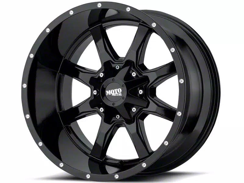 Moto Metal MO970 Gloss Black Milled 8-Lug Wheel; 22x12; -44mm Offset. Enhance your vehicle's look with the Moto Metal MO970 Gloss Black Milled 8-Lug Wheel. This premium wheel adds a touch of elegance and class to your vehicle, complementing its sophisticated aesthetic.