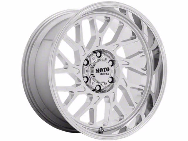 The 20x10 Moto Metal MO805 Chrome 6-Lug Wheel has a chrome finish that is accomplished in a 3-step plating process - copper, nickel, then chrome.