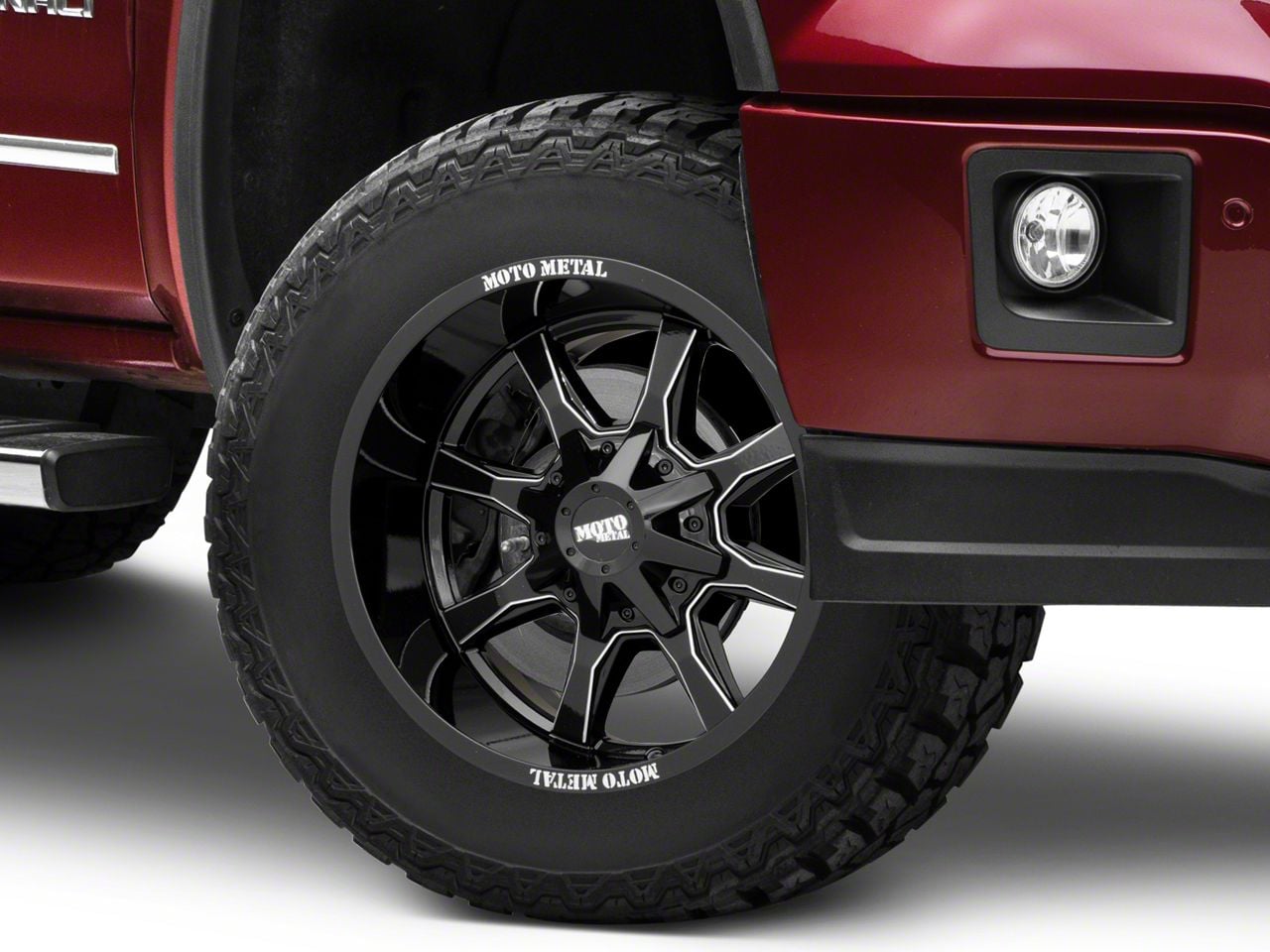 Application. This Moto Metal MO970 Gloss Black Milled 6-Lug Wheel; 18x10; -24mm Offset with a backspace of 4.556 Inch, 115.8mm and bolt pattern of 6 x 139.7mm (6 x 5.5-Inch) ensures optimal alignment, unparalleled driving stability, and an impeccable fit with your vehicle. It is designed to fit the 2014-2018 Sierra 1500 models. Sold individually.