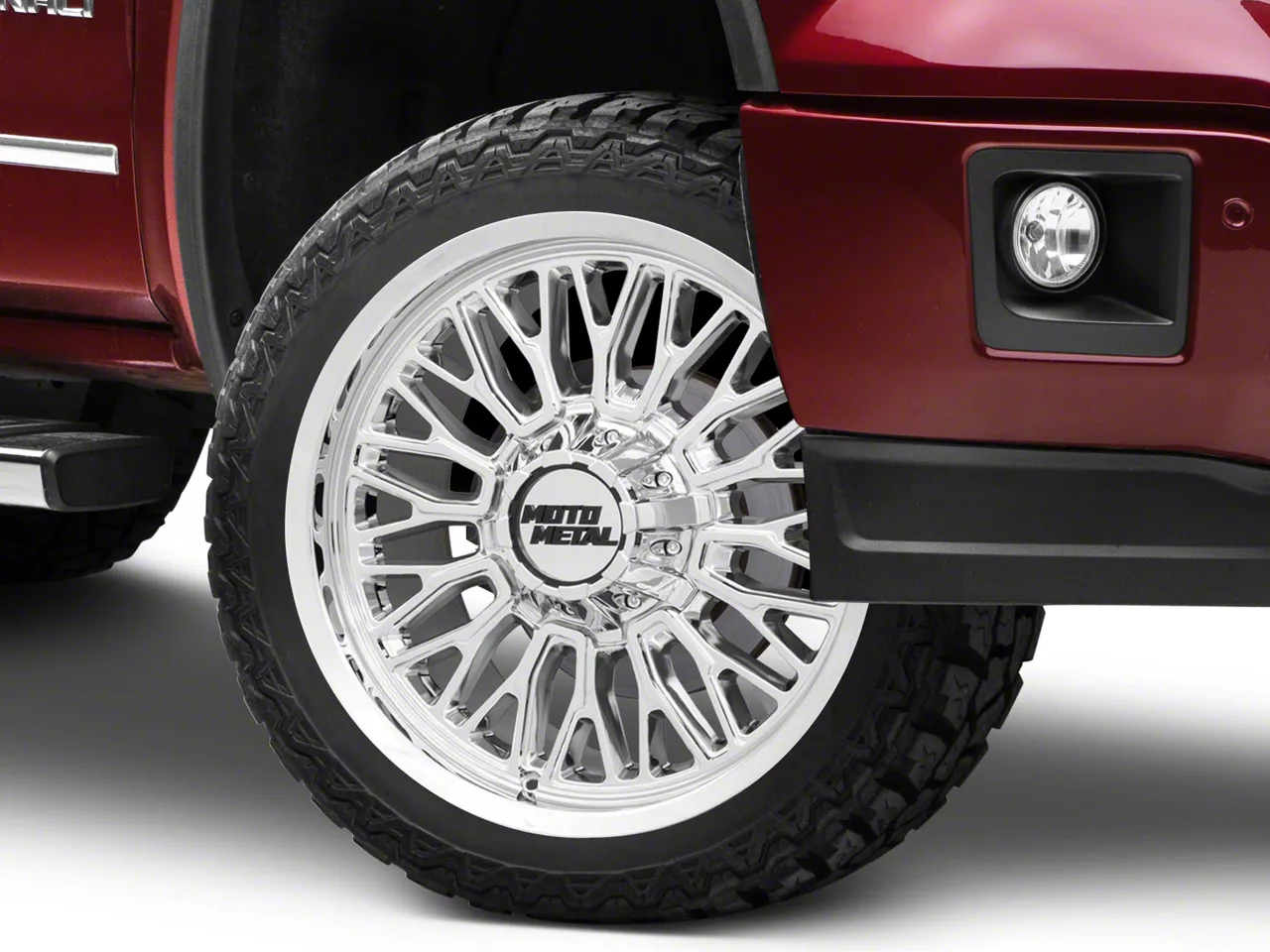 Application. This Moto Metal Stinger Chrome 6-Lug Wheel; 22x12; -44mm Offset, with a backspace of 4.768 Inch, 121.1mm and bolt pattern of 6 x 139.7mm (6 x 5.5-Inch), is designed to provide not only a striking visual appeal but also to contribute significantly to the alignment and driving stability of the vehicle. Its specifications ensure a precise fit with the vehicle model, enhancing the overall driving experience. Built to fit the 2014-2018 Sierra 1500, this wheel is sold individually.