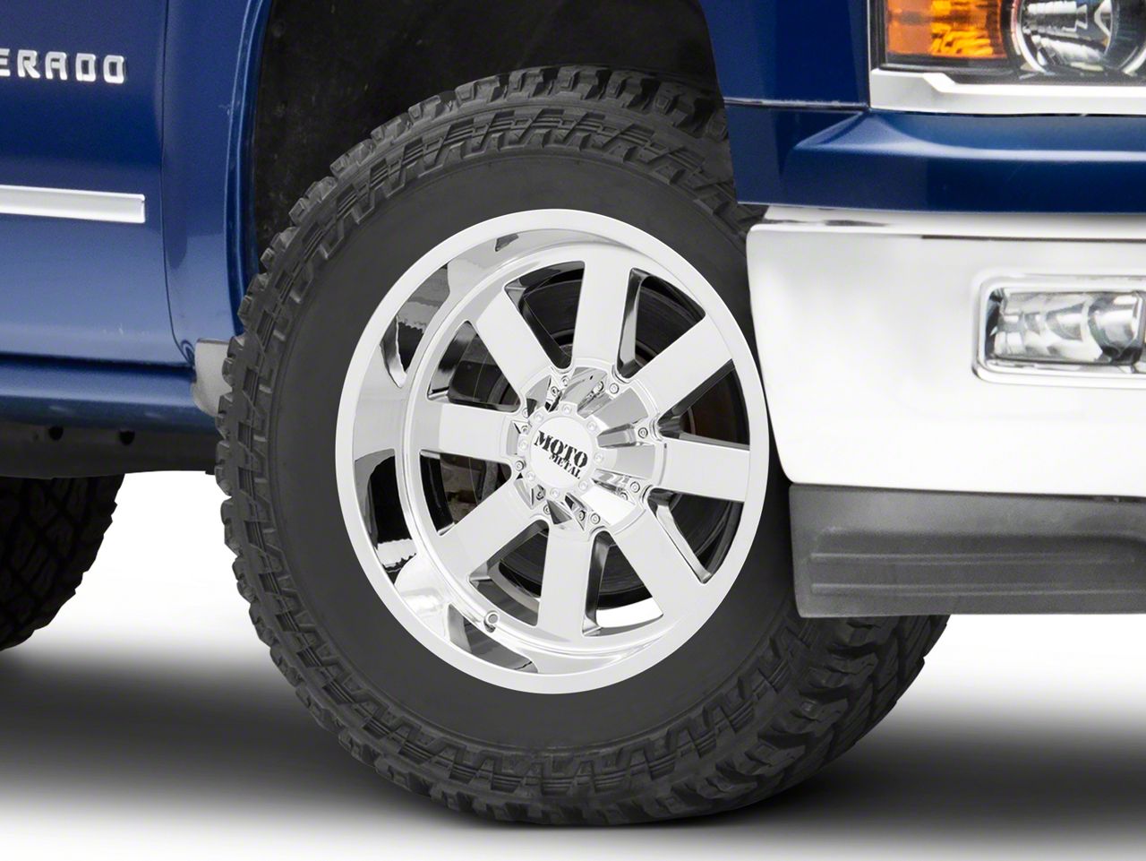 Application. This Moto Metal MO962 Chrome 6-Lug Wheel; 20x9; 0mm Offset, with a backspace of 5 Inch, 127mm and bolt pattern of 6 x 139.7mm (6 x 5.5-Inch), is designed to provide not only a striking visual appeal but also to contribute significantly to the alignment and driving stability of the vehicle. Its specifications ensure a precise fit with the vehicle model, enhancing the overall driving experience. Built to fit the 2014-2018 Silverado 1500, this wheel is sold individually.