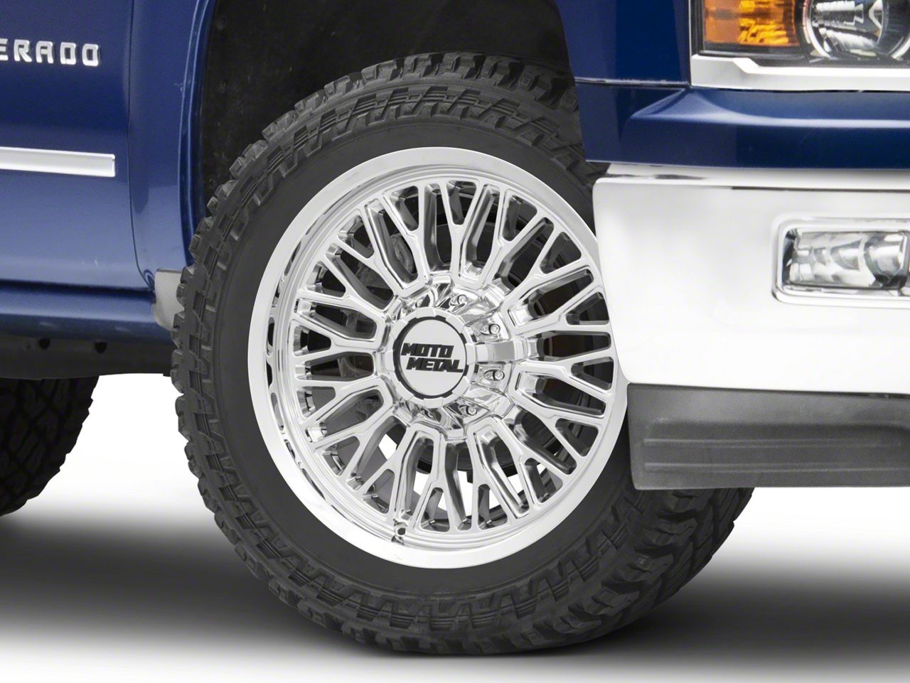 Application. This Moto Metal Stinger Chrome 6-Lug Wheel; 22x12; -44mm Offset, with a backspace of 4.768 Inch, 121.1mm and bolt pattern of 6 x 139.7mm (6 x 5.5-Inch), is designed to provide not only a striking visual appeal but also to contribute significantly to the alignment and driving stability of the vehicle. Its specifications ensure a precise fit with the vehicle model, enhancing the overall driving experience. Built to fit the 2014-2018 Silverado 1500, this wheel is sold individually.