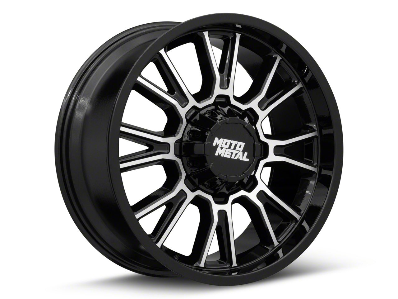 Moto Metal Legacy Gloss Black Machined 8-Lug Wheel; 18x9; 20mm Offset offers a sleek and modern design that enhances the visual appeal of any vehicle. Crafted with attention to detail, this wheel merges aesthetic elegance with a robust build, making it a fitting choice for those seeking a blend of style and durability.