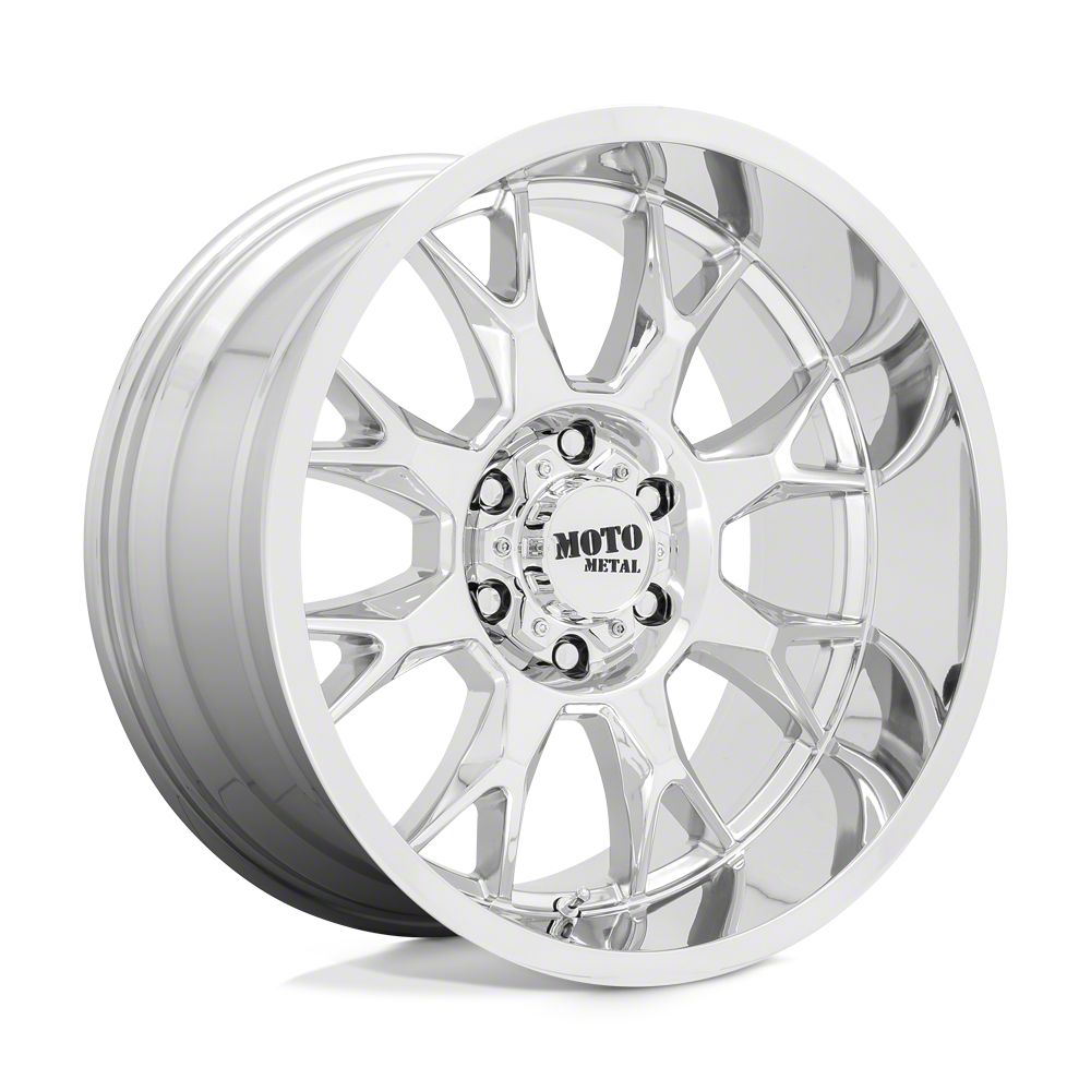 Moto Metal MO806 Chrome 8-Lug Wheel; 20x9; 0mm Offset is a perfect blend of style and rugged design, making it a standout choice for those looking to enhance their vehicle's aesthetic appeal. Its bold, dark metallic finish pairs seamlessly with a wide variety of vehicle styles, offering both modernity and durability. Built by Moto Metal, this wheel is designed to elevate your vehicle's appearance with its robust presence.
