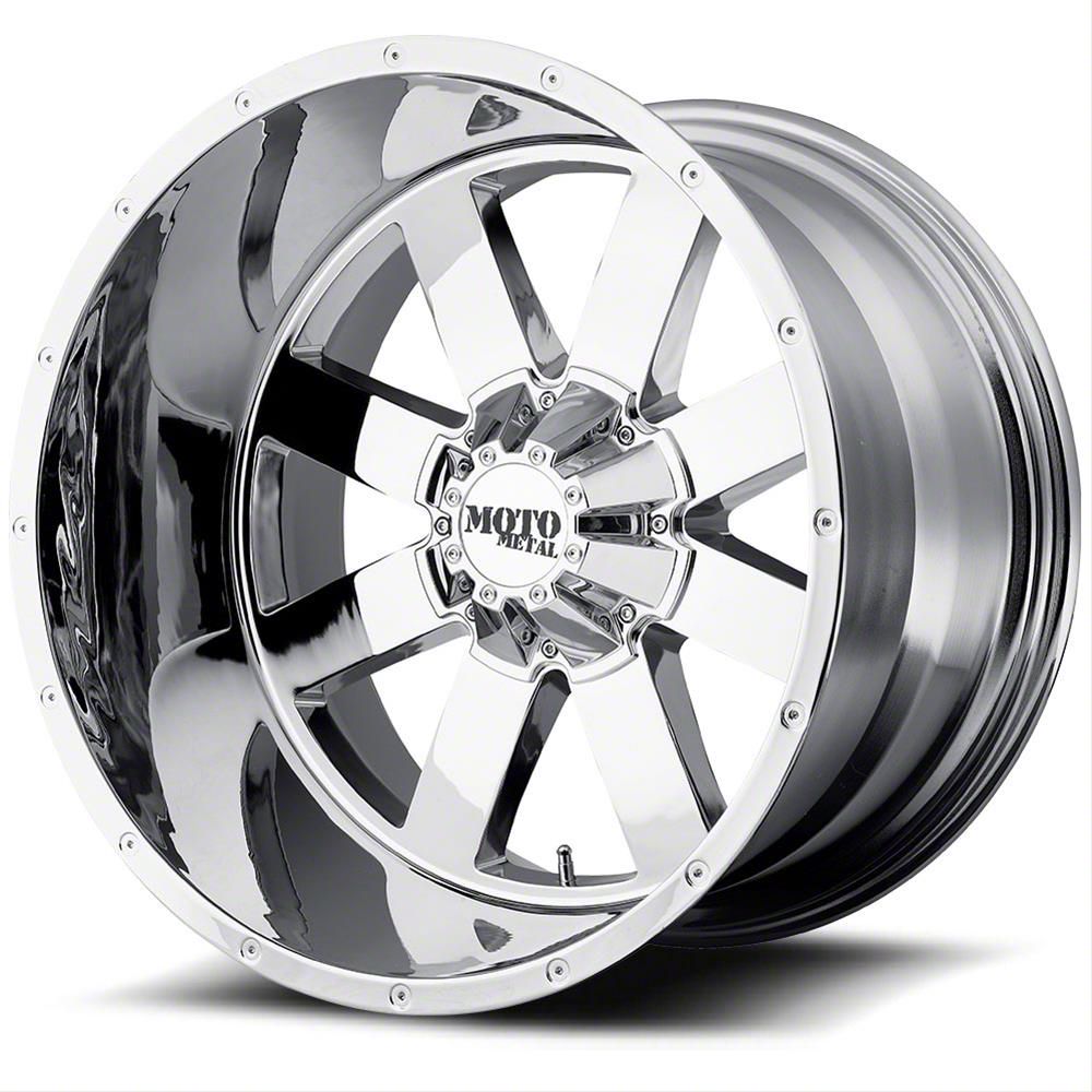 The 20x10 Moto Metal MO962 Chrome 8-Lug Wheel; ; -24mm Offset has a chrome finish that is accomplished in a 3-step plating process that includes copper, nickel and chrome.