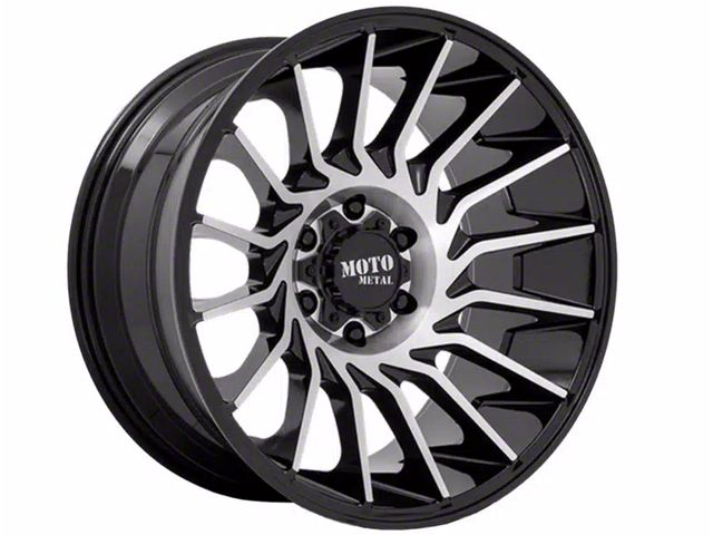 Moto Metal MO807 Gloss Black Machined 6-Lug Wheel; 22x12; -44mm Offset. The Moto Metal MO807 Gloss Black Machined 6-Lug Wheel offers a striking balance of style and refinement. Its unique design accentuates the vehicle's aesthetic, while the premium construction underscores its robust nature. This wheel is a perfect choice for those seeking both elegance and a strong visual statement.
