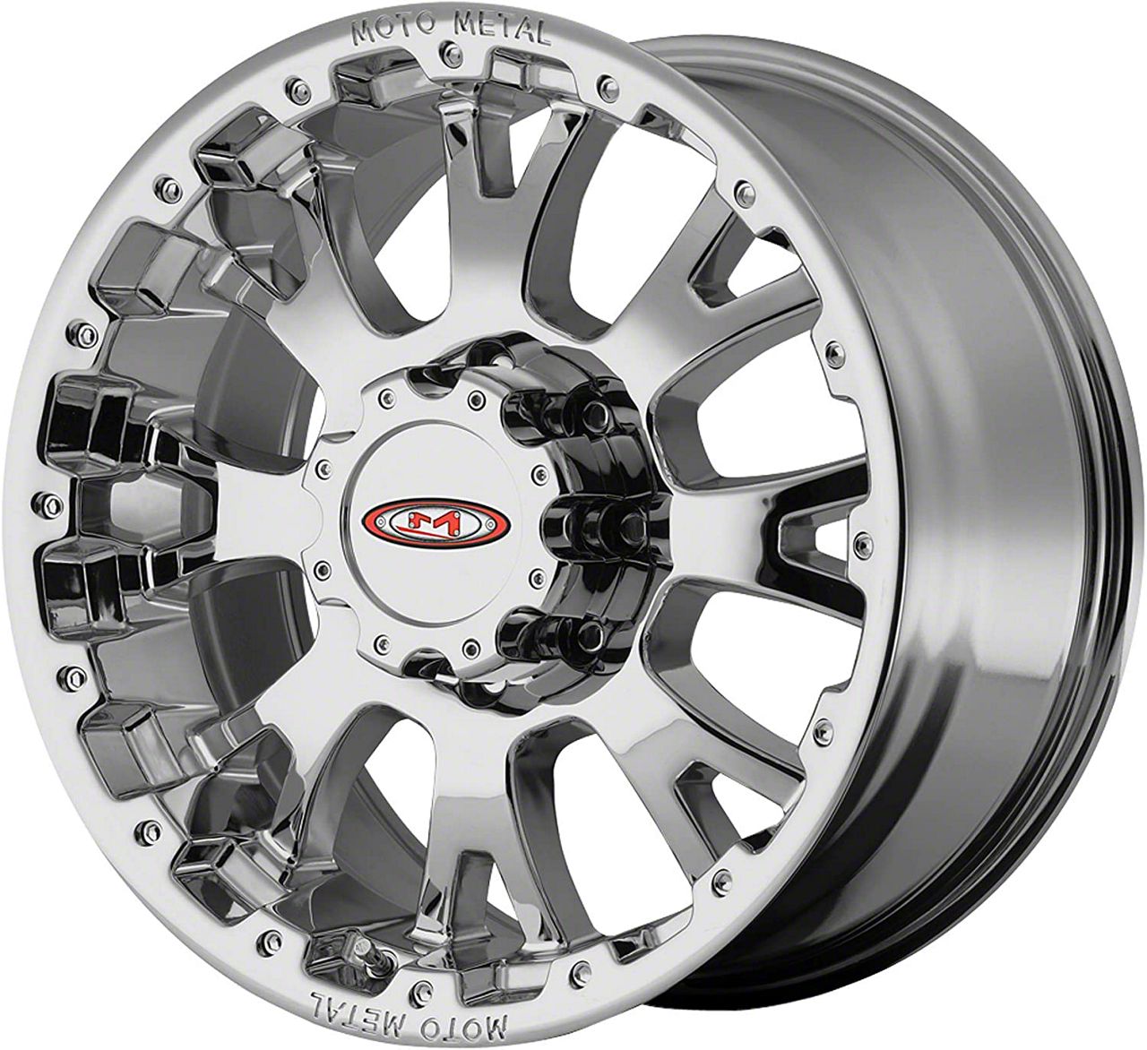 This 20x9 Moto Metal MO956 Chrome 6-Lug Wheel is completed in a high-quality, polished chrome finish that will make the wheel the envy of everyone. There is a durable clear coat that protects against driving hazards.One-Piece Cast Aluminum Construction. This wheel is manufactured using gravity casting. Gravity casting is the process of pouring a molten aluminum alloy into a wheel mold or form utilizing the earth's own gravity to help fill the mold. The result is a strong, durable wheel that has the same good looks as a more expensive wheel, at a fraction of the price.