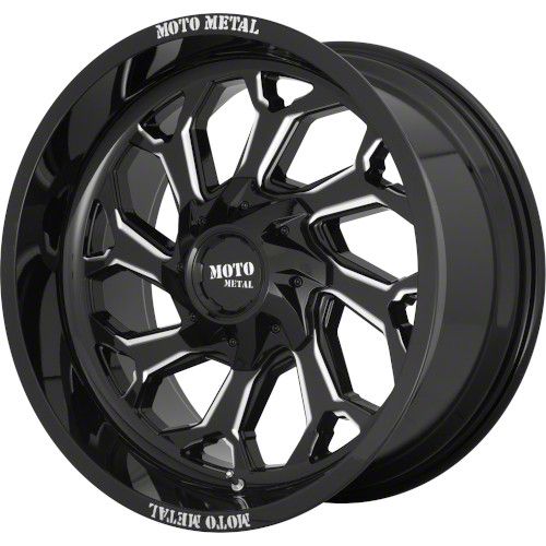 Moto Metal MO999 Gloss Black Milled 6-Lug Wheel; 20x10; -2018mm Offset - Enhance your vehicle's style with the Moto Metal wheel. This wheel's distinctive design and finish complement your vehicle's aesthetics, making a bold statement. It's crafted to accentuate the unique character of your car, emphasizing a premium and robust appeal.