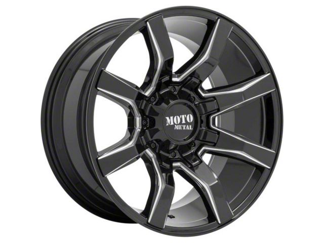 Moto Metal Spider Gloss Black Milled 6-Lug Wheel; 20x10; -18mm Offset offers a sleek and modern design that enhances the visual appeal of any vehicle. Crafted with attention to detail, this wheel merges aesthetic elegance with a robust build, making it a fitting choice for those seeking a blend of style and durability.